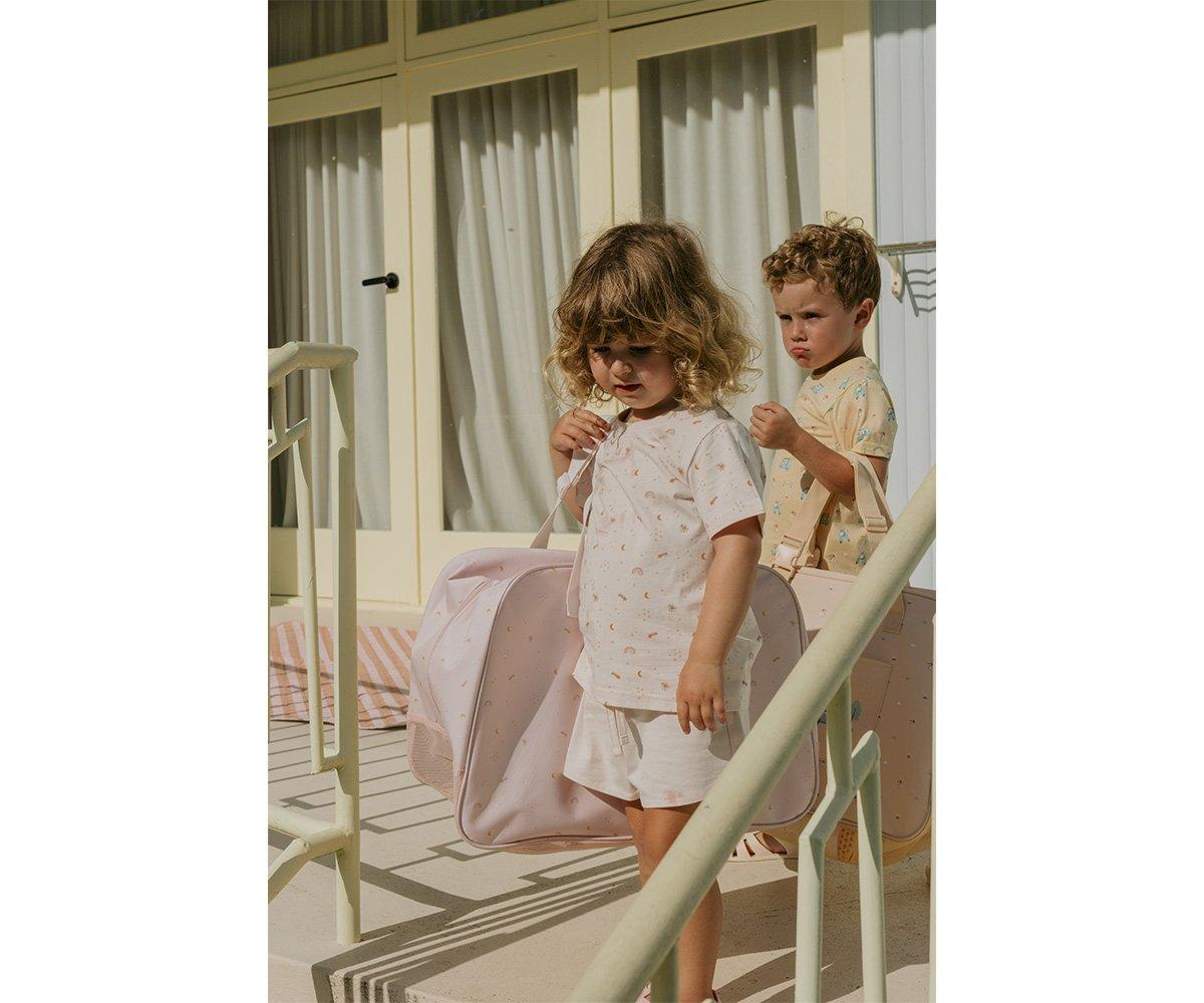 Monnëka presenta el pantalón corto de algodón con cintura elástica y cordón de ajuste.